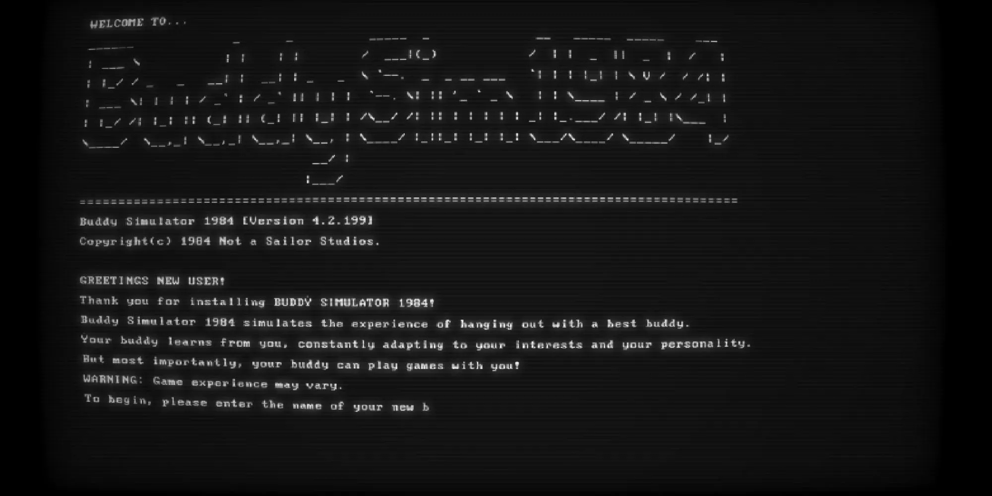 Màn hình chính của game Buddy Simulator 1984, một ví dụ về game phiêu lưu dựa trên văn bản.