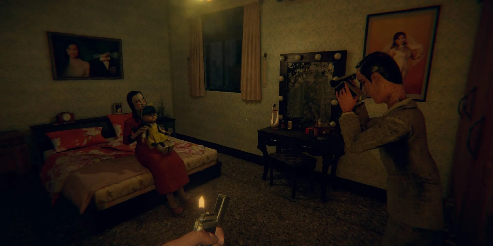 Ma-nơ-canh và búp bê Mei Shin trong căn hộ u ám của game Devotion.